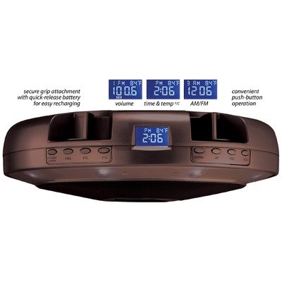 Add light and sound this summer with the Serenata LED Umbrella Light and Media Center. Features include: Dual band AM/FM stereo system, Music player doc compatible with iPod/MP3/MP4/Phones and other music sources, 2 powerful hi-quality speakers, 8 super white adjustable LED lights, LCD display panel showing time, temperature and radio stations, wireless remote control included, 30+ hours for lights, 9 hours for stereo or 6 hours for both lights and stereo, Long-lasting rechargeable Lithium battery. Comes in a handsome bronze finish. Fits umbrella poles up to 2-Inch in diameter with Vega Adapter for Cantilever Umbrellas.