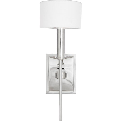 The Detailed Description of Quoizel RFR8701PV Ferrera 1 Light Wall Sconce, Polished Silver with Off White Linen ShadesFeatures