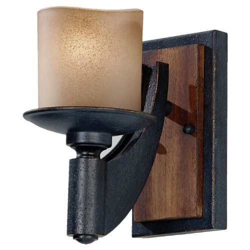The Detailed Description of Murray Feiss WB1519AF/AGW Madera Collection 1-Light Wall Sconce, Antique Forged Iron and Aged Walnut with Fluer De Lis GlassFeatures