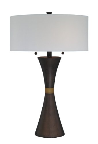 Shade:White, Light Bulb:(2)60w A19 Med F Incand Begum 2-light table lamp. Dark Walnut wood body with amber acrylic decoration White fabric shade Dual on/off pull chains