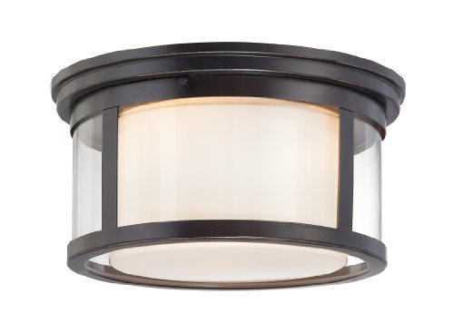 Finish:Palladian Bronze, Size:Small, Light Bulb:(2)75w A19 Med C Incand Wilson flush mount ceiling light Outer clear glass with opal etched inner glass.