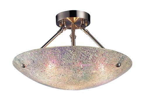The Detailed Description of Landmark 73042-3 Avalon 3-Light Semi-Flush Mount, 11-Inch, Satin Nickel with Iridescent GlassFeatures