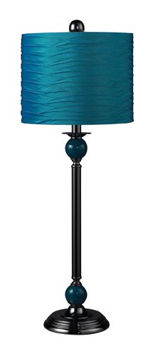 This Metal Buffet Lamp with Pleated Satin Shade can enhance the functionality of a room while adding a warm and inviting decorative focal point. Available in turquoise, green, and purple, lamp is 33-Inch tall and shade is 12-Inch diameter. Metal column base is accented with ceramic globes. Lighting is one of the easiest ways to set a mood; it can radiate romance and intimacy or create a dramatic visual effect by spotlighting artwork or architecture. Lighting can also complement a room's decor while letting you express your style and with Sterling Industries you're sure to find just the light you're looking for. Sterling Industries was founded in the mid-1990s to fulfill a dream, and creativity and imagination have become the founding pillars of business. Sterling strives to incorporate inspiration from around the world into forward fresh home accents.