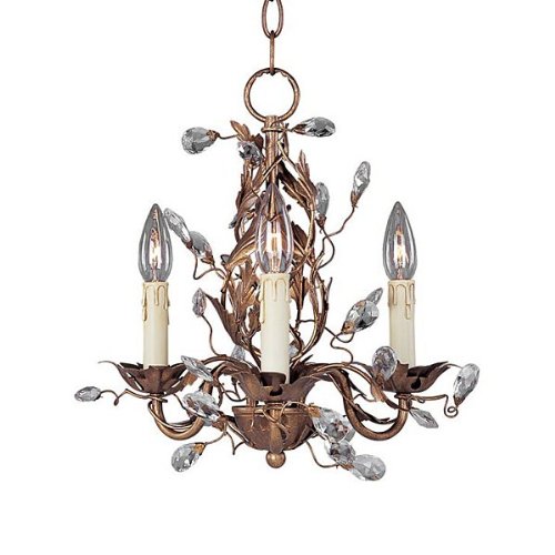 Maxim 2855OI Elegante 3-Light Chandelier One of our most popular collections, Elegante combines lighting with decorating. Delicate leaves and crystals top the wrap-around vines. Offered in Etruscan Gold or Oil Rubbed Bronze.