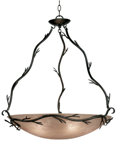Kenroy Home 90904BRZ Twigs 5 Light Pendant Inspired by nature, this elegant collection blends the vibrance of a climbing vine with the soft glow of light. Twigs is ideal for both Asian-influenced and rustic or country-style rooms. Family: Twigs Finish: Bronze Finish 24 Inch Diameter Amber Iridescent Glass Shade 5-100 Watt (M) Bulbs 29 Inch Height, 28 Inch Diameter