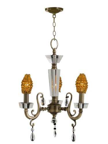 Finish:Antique Brass, Light Bulb:(3)60w B10 Cand C Incand Prato Three-Light Chandelier