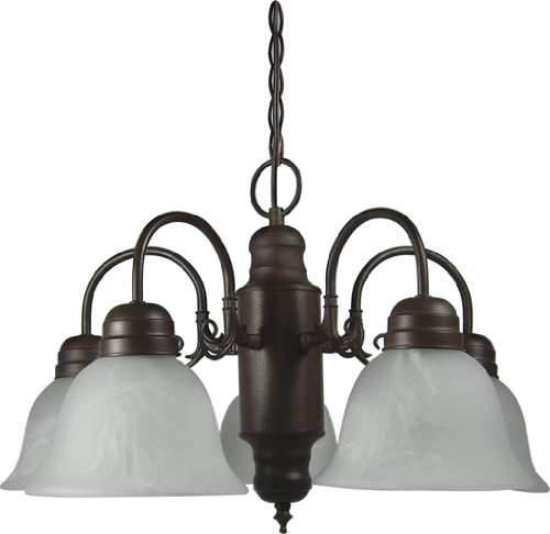 1435-5DB Finish: Dark Brown Shown in satin nickel frame Features: -Five light chandelier.-White frosted marble glass shade.-Contemporary architectural design.-UL rated. Includes: -Includes decorative chain and canopy. Options: -Available in satin nickel or dark brown finish. Specifications: -Accommodates (5) 60W medium base incandescent bulb (not included). Assembly Instructions: -Assembly required. Dimensions: -Overall dimensions: 13'' H x 24'' W x 24'' D. Collection: -Manzanita collection. Warranty: -Manufacturer provides 1 year warranty.