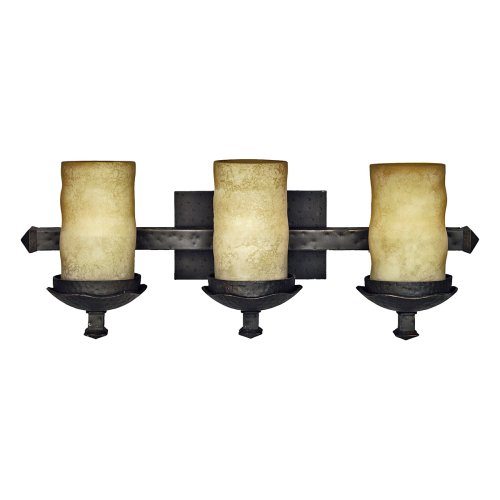 Finish:Imperial Bronze, Light Bulb:(3)100w A19 Med F Incand This stately look is influenced by Moorish, Spanish and Gothic styles. The intricate metal scrollwork is made of handforged iron, and the handmade shades emit a soft radiance, appearing much like real candles. FeaturesCandella Scavo glass.