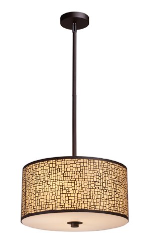 Elk Lighting 31046/3 Medina Pendant Etched curved corner rectangles are brilliantly enhanced by the diffused light within this drum shaped fixture. The appearance is further defined by the polished stainless steel finish with a sparkling white diffuser or an aged bronze finish with an amber diffuser. W:16" H: 8" Aged Bronze