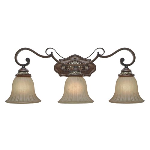 The Detailed Description of Golden Lighting 2501-BA3 NWB 26.75-Inch W by 10.625-Inch H by 8.75-Inch E Bristol Place Three Light Vanity, New World Bronze FinishFeatures