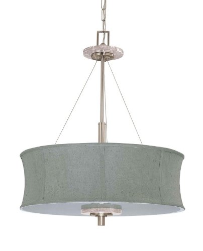 The Detailed Description of Nuvo 60/2887 Four Light Pendant With Grey Fabric Shade And Frosted Diffuser, Brushed NickelFeatures
