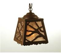 Meyda Tiffany 50939 Branches 1-Light Mini-Pendant is hand crafted in the USA by Meyda artisans. Bring a little of the rustic outdoors into your personal sanctuary with the warm Cafe Noir finish with Silver Mica panels backlighting depictions of branches for a piece every lodge or cabin, or even an urban home deep in the city will appreciate for years to come. The 50939 is 10 inches high x 8 inches wide, maximum hanging height is 70 inches. The 50939 comes one per package, and requires one 60-watt medium base incandescent bulb (not included), dimmable using a standard incandescent dimmer. As in any hand crafted glass, patterning and the overall look may vary, and may not look exactly like the image shown when received, and may all differ slightly if ordering in multiples. Custom crafted in Yorkville, NY - please allow 30 days before shipping. The Meyda Tiffany Company is the nation's leading manufacturer and designer of Tiffany lamps and decorative lighting. Although founded in 1974, the firm's roots actually date back to the early 1900s, supplying Louis Comfort Tiffany and Tiffany Studios with lighting products, and creating the original Coca-Cola stained glass lamps and chandeliers.Meyda Lighting offers thousands of in-stock stained glass lighting and decor designs, with more than 50,000 customizable lighting options. Its vast line includes: Coca-Cola stained glass lighting group. Old Forge Collection of Rustic and Lodge styled lighting and decor. Craftsman Signature Series of outdoor and indoor lighting (including new landscape lanterns) featuring Arts and Crafts designs. Stained Glass lighting featuring Victorian, Nouveau and a broad range of styles. Art Glass windows and Fireplace Screens. Tiffany gifts and home accents. and The Metro and Metro Fusion Lines of contemporary art glass and fused glass designs.