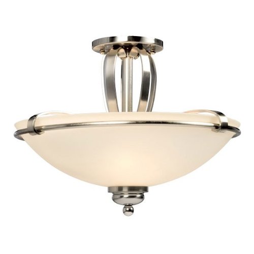 Finish:Brushed Nickel, Glass :White, Light Bulb:(3)60w A19 Med F Incand Ella 3 light semi-flush mount Some assembly required.
