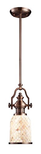 The Detailed Description of Landmark 66442-1 Chadwick 1-Light Pendant, Antique Copper and Cappa Shell, 17-Inch H by 6-Inch WFeatures