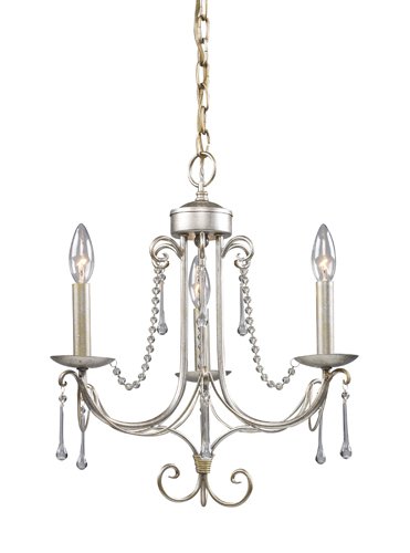 Number of Lights:3 Lights, Finish:Antique Silver, Light Bulb:(3)60w B10 Cand C Incand Elongated drops and glass bead strands dress up the pieces of the Cambridge collection. These elements, along with the deliberate omission of fabric shades, give this piece a refined, formal appearance. Comes with 12 feet of wire and 4 feet of chain for hanging. Part of the Cambridge collection.