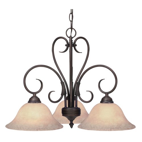 Golden Lighting's Homestead RBZ Chandelier fixture - 8606-ND3 RBZ Cozy and inviting transitional style Blends with any eclectic or casual room dcor Warm Tea Stone glass Also available with Ridged White Marble Glass A chandelier creates a stylish focal point Creates a soft downlight for task lighting Homestead RBZ Rubbed Bronze Width: 23.5 Height: 17.5 Chain Length: 6' Wire Length: 10' Glass / Shade Finish: Tea Stone Glass Glass / Shade Diameter: 9.5 Glass / Shade Height: 4 Canopy / Backplage Dimension: 5"Dia x 1"E Fixture Wattage: 3 x 100W(M) UL Listing: dry Number of Sockets: 3 Max Wattage: 100W Total Wattage: 300W Bulb Type: Incandescent, Type A Bulb Included: No Material Metal / Glass