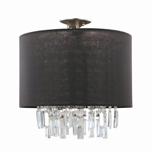 , Finish:Buffed Nickel, Shade:Black Fabric Shade, Light Bulb:(3)75w T4 G9 120v Halogen 12' Round Semi flush mountfixture.