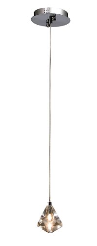 Eclipse 1 lite pendant features high quality and low voltage bulbs (included) in crystal diamond cut diffusers hanging from polished brushed nickel holders